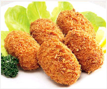 所謂漿粉,是加入水或雞蛋,以液體的狀態(tài)使用預拌粉。像直接以漿液作為外皮這樣的天婦羅商品,或者以漿液作為粘著劑再粘上面包糠來完成的商品等,有多種不同的用法。一般的做法是基本上與打底粉同時使用。